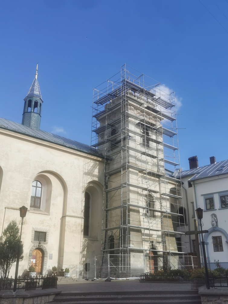 Ustawione rusztowania pozwolą również na wykonanie sondaży stratygraficznych tynków wieży w celu opracowania programu na następne lata.