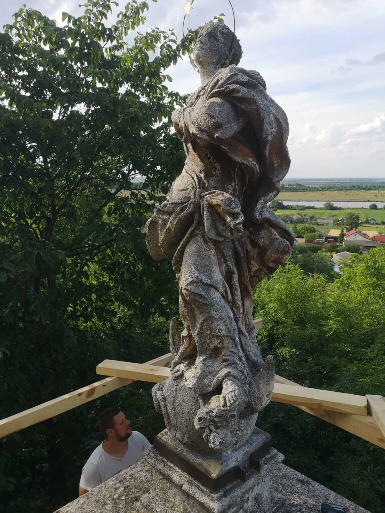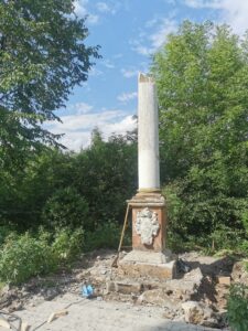 epoki baroku, a jej pochodzenie przypisywane jest uczniom Jana Jerzego Pinsla. Dzięki przeprowadzonym pracom, można częściowo przywrócić piękno temu miejscu, aby podążający w stronę Złoczowa turyści mogli podziwiać uroki tego miejsca, niezwykle malowniczo położonego, zaledwie kilkaset metrów od głównej trasy ze Lwowa na Złoczów. Niegdyś bardzo piękne założenie, po którym dzisiaj pozostała praktycznie ruina, stary cmentarz oraz niezwykle piękna barokowa kolumna, która jest jednym z ostatnich świadków ciekawej historii tego miejsca.