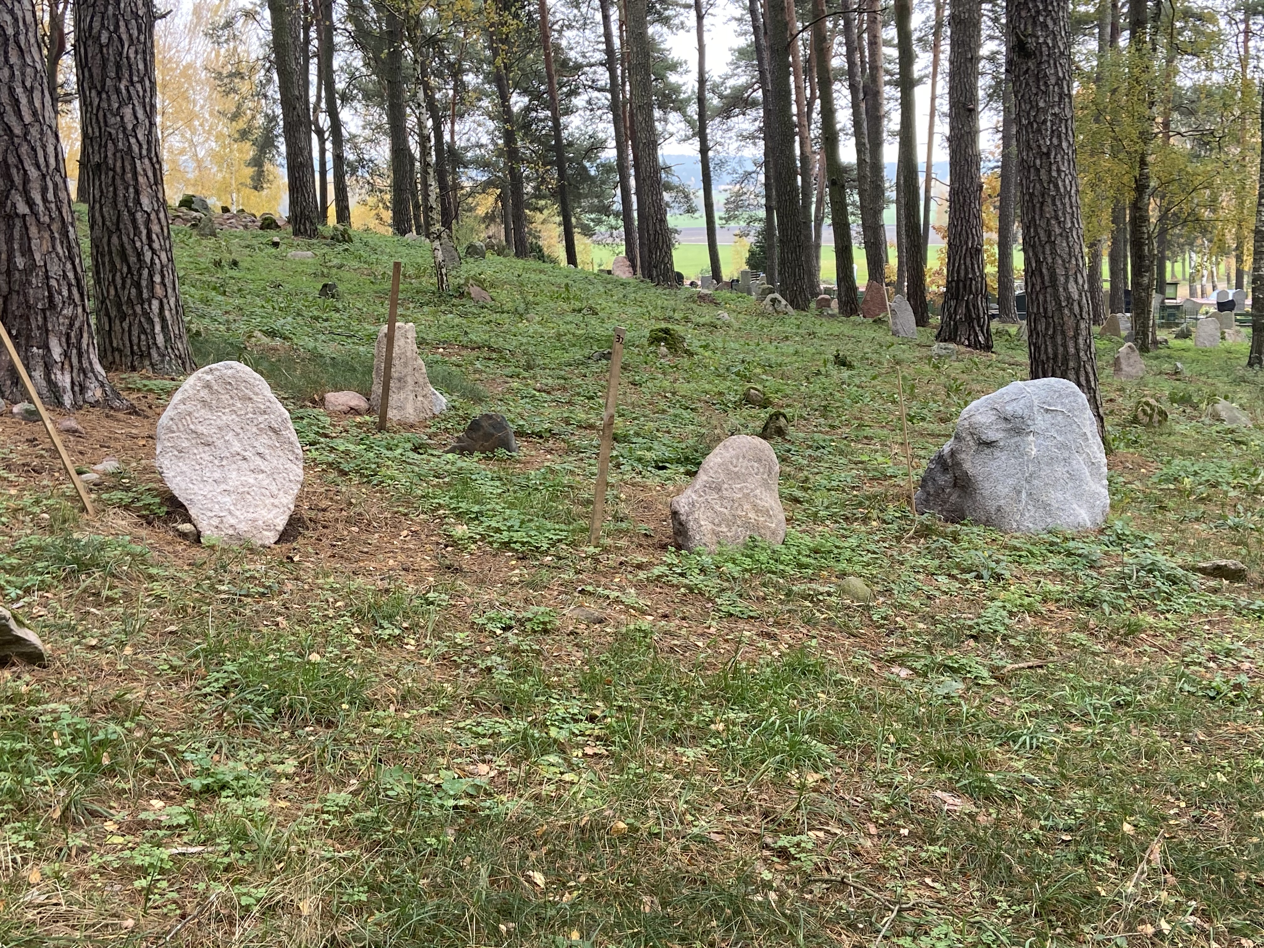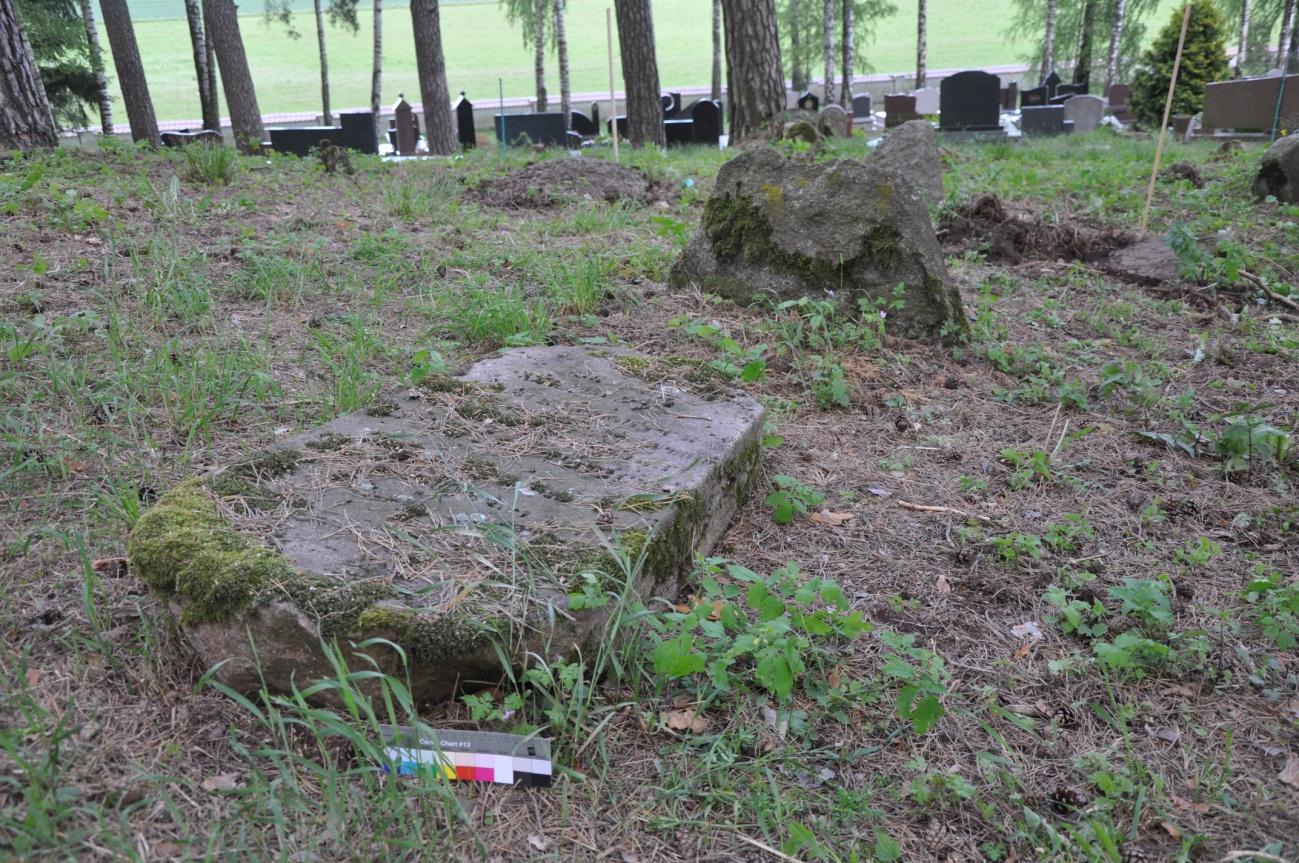 Współczesne pochówki znajdują się dookoła wzniesienia, w pobliżu ogrodzenia. Część spośród zachowanych zabytków uległa przemieszczeniu. Znaczna ilość głazów jest przewrócona, niektóre z nich są częściowo lub całkowicie zapadnięte w ziemię. Większość nagrobków na cmentarzu  stanowią obiekty wykonane z nieopracowanych