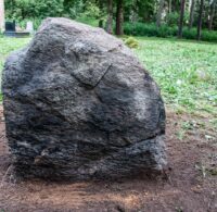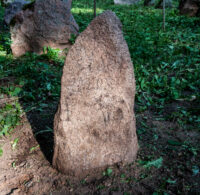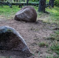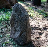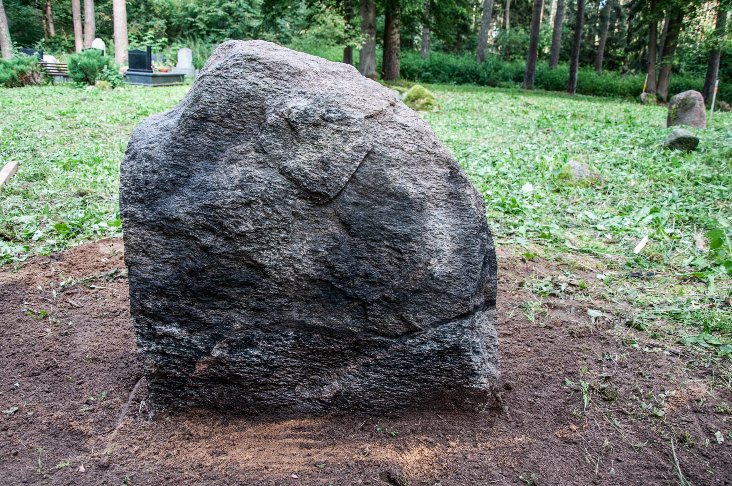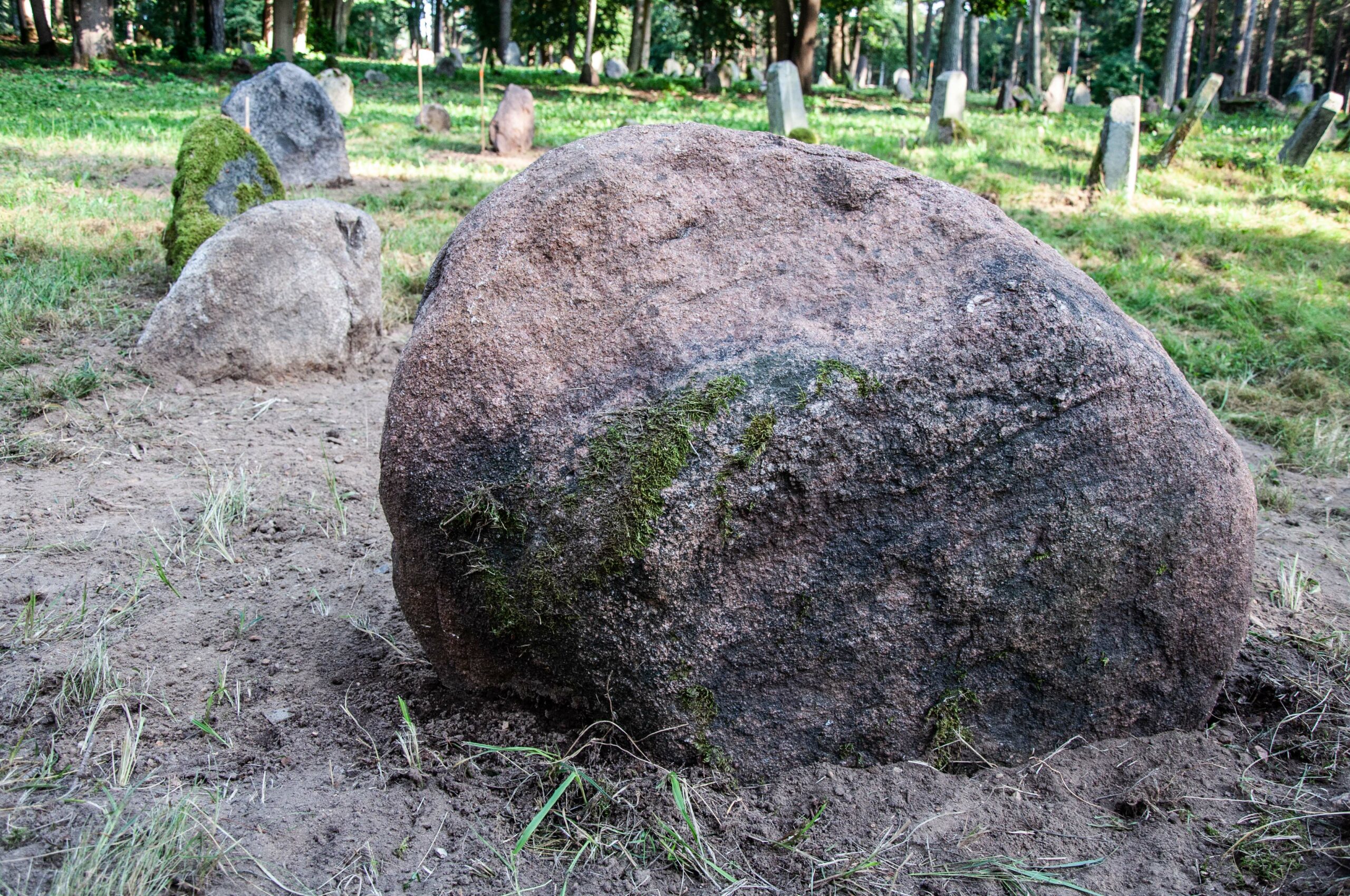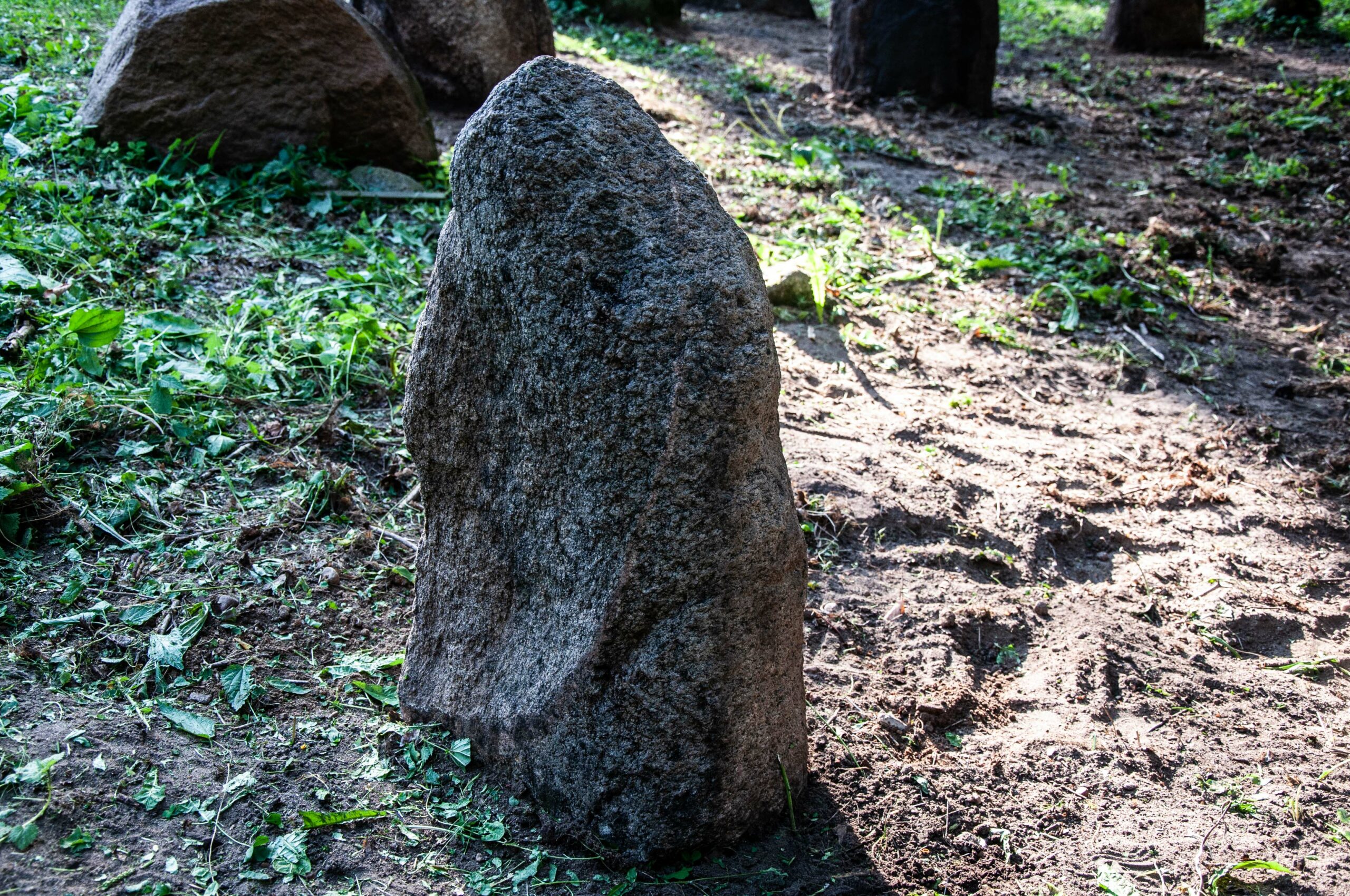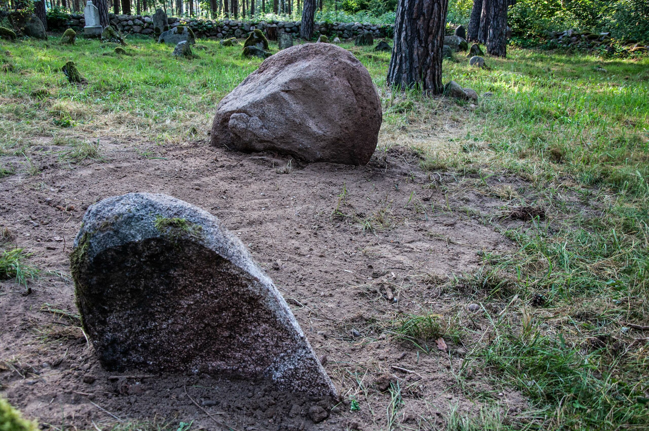 zamontowano kamienie nagrobne, stabilizując je drobnymi kamieniami w postaci
