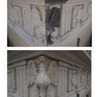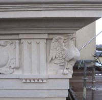 W 2017 roku działania konserwatorskie objęły południowy fragment fryzu wraz z wieńczącymi go tympanonem oraz oculusem.