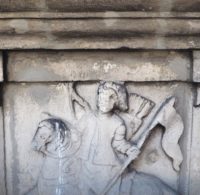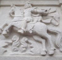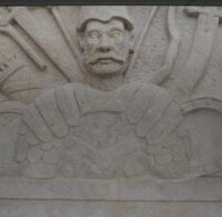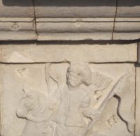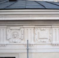 Metopy fryzu zostały ozdobione płaskorzeźbami takimi jak: św. Jerzego i św. Marcina walczący ze smokiem, konni husarze, łucznicy, ranni żołnierze, herb Lubicz Żółkiewskich, symboliczne kompozycje składające się z bram, panoplii oraz motywów roślinnych. Narożniki zwieńczone zostały pełnoplastycznymi przedstawieniami orłów.