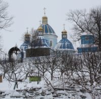 Na wzgórzu w starej wsi Niskienicze – obecnie części powstałego w 1950 roku Nowowołyńska – znajduje się monastyr wraz z ufundowaną około 1643 roku przez Adama Kisiela cerkwią pw. Zaśnięcia Matki Bożej.