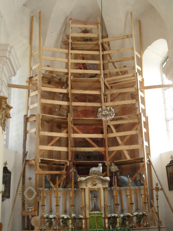W 2017 roku polsko-łotewski zespół konserwatorów pod kierunkiem Tomasza Dziurawca przeprowadził kolejny etap prac konserwatorskich w prezbiterium kościoła. Tym razem uwagę poświęcono dolnej części iluzjonistycznego ołtarza oraz architektonicznej, dolnej, drewnianej części składającej się z mensy i tabernakulum. Tym samym prace konserwatorskie przy ołtarzu głównym zostały zakończone.