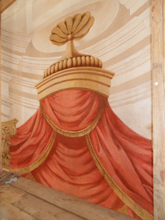 W 2014 roku kościelne malowidła ścienne poddano kompleksowym pracom badawczym. Zbadano częściowo widoczne iluzjonistyczne dzieła zdobiące prezbiterium, wykonano również odkrywki w obrębie całej świątyni. Wynik przeprowadzonej analizy porównawczej pozwolił z dużym prawdopodobieństwem przypuszczać, że autorem liczącej 65 m2 powierzchni dekoracji malarskiej w ołtarzu głównym był Filippo Castaldi, malarz związany z rodem Platerów, autor m.in. fresków z kościoła św. Ludwika w Krasławiu. Ustalenie autorstwa malowideł stanowiło zaledwie pierwszy etap prac Fundacji w Przydrujsku. Na kolejny rok zaplanowano pełną konserwację tych zabytkowych dzieł sztuki.