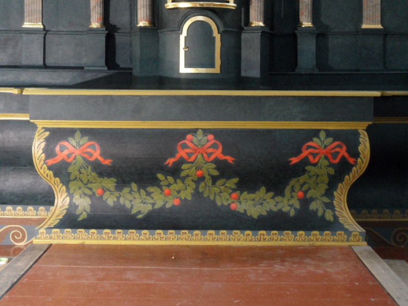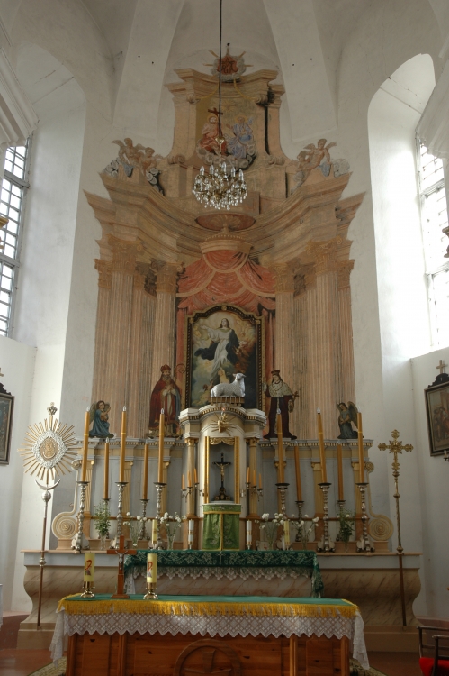 W 2017 roku polsko-łotewski zespół konserwatorów pod kierunkiem Tomasza Dziurawca przeprowadził kolejny etap prac konserwatorskich w prezbiterium kościoła. Tym razem uwagę poświęcono dolnej części iluzjonistycznego ołtarza oraz architektonicznej, dolnej, drewnianej części składającej się z mensy i tabernakulum. Tym samym prace konserwatorskie przy ołtarzu głównym zostały zakończone.