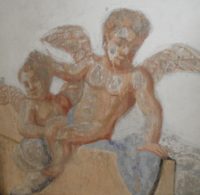 W 2014 roku kościelne malowidła ścienne poddano kompleksowym pracom badawczym. Zbadano częściowo widoczne iluzjonistyczne dzieła zdobiące prezbiterium, wykonano również odkrywki w obrębie całej świątyni. Wynik przeprowadzonej analizy porównawczej pozwolił z dużym prawdopodobieństwem przypuszczać, że autorem liczącej 65 m2 powierzchni dekoracji malarskiej w ołtarzu głównym był Filippo Castaldi, malarz związany z rodem Platerów, autor m.in. fresków z kościoła św. Ludwika w Krasławiu. Ustalenie autorstwa malowideł stanowiło zaledwie pierwszy etap prac Fundacji w Przydrujsku. Na kolejny rok zaplanowano pełną konserwację tych zabytkowych dzieł sztuki.