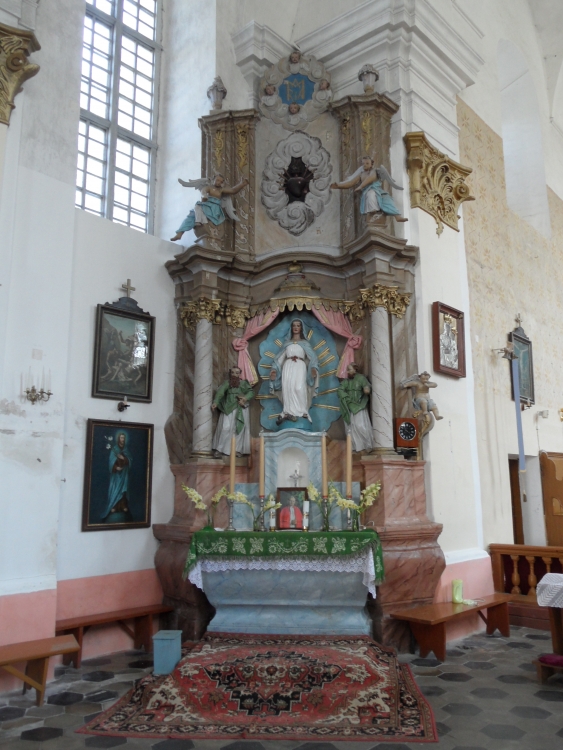 The church in Piedruja was built in the period 1759-1774 on the initiative of a Vilnius canon named Karol Karp. It is assumed it was constructed based on a design by Antonio Paracco, the architect and constructor of nearby churches found in Druya and Krāslava. The church features a high altar from the 18thcentury – a unique example of illusionist painting used as a setting for the high altar, one-of-a-kind in the entire Latvia. The main part of this setting is occupied by a copy of Bartolomé Murillo’s painting, made in the 1930s. The architectural section of the altar comes with scenes painted on steel metal sheet, dating back to around 1900.
