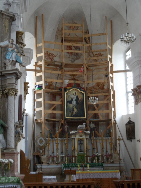 The year 2015 was marked by the first stage of conservation works the illusionist high altar of the church was subject to. The task was carried out by a conservation team managed by Tomasz Dziurawiec.