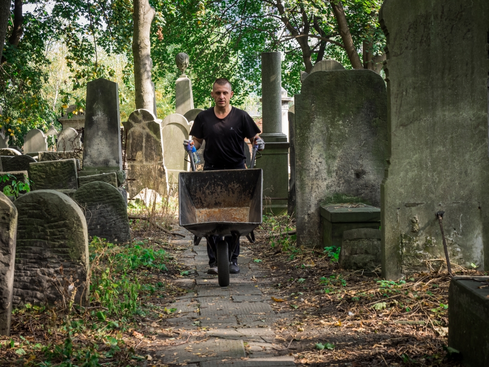 The necropolis, remaining under the care of the Jewish Community in Warsaw since 2001, miraculously survived the time of WWII. In the post-war period it was left neglected for many years, gradually falling into ruin. But with time there occurred occasional attempts to restore it to its former glory. The Cultural Heritage Foundation is now running conservation and clean-up works at the same time. The latter have an additional social impact as they often bring together volunteers and supporters of our foundation. The undertaken activities include mostly collecting and removing trash, broken branches, and self-sown plants from the cemetery quarters.