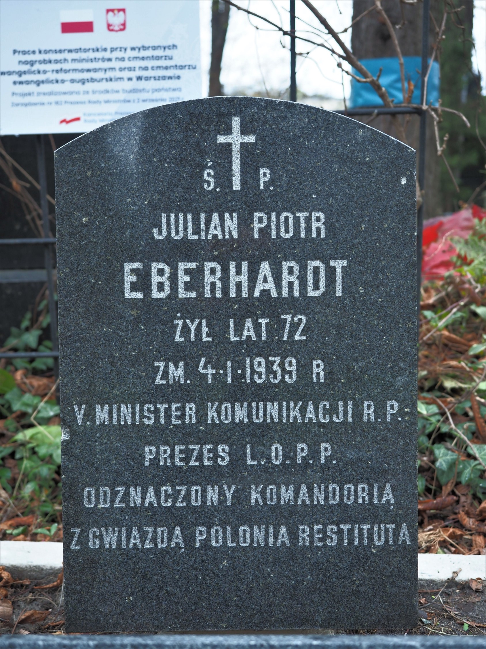 Prace odbyły się dzięki wsparciu z Rezerwy Budżetowej Kancelarii Prezesa Rady Ministrów w ramach projektu pn. “Prace konserwatorskie przy wybranych nagrobkach Ministrów na cmentarzu ewangelicko-reformowanym oraz na cmentarzu ewangelicko-augsburskim w Warszawie”.