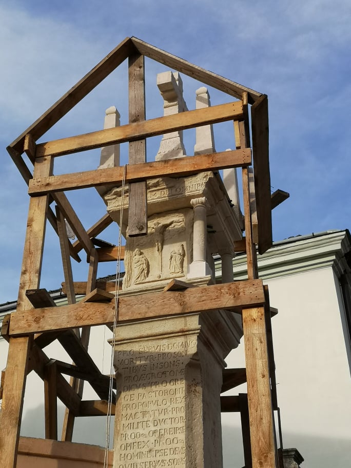 W 2019 roku po przekazaniu wszystkich części kapliczki ( kubik z płaskorzeźbami oraz dwa kawałków gzymsu były przechowywane w Muzeum Historycznym we Lwowie) dokonano montażu wszystkich części kapliczki.