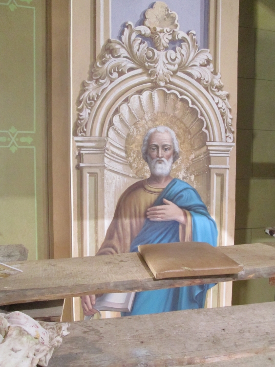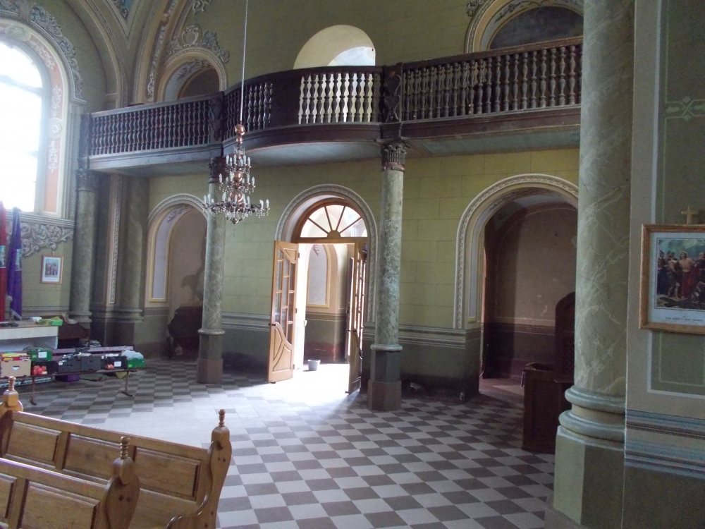 During WWII, the church in Kuty was damaged and devastated, and turned into a glass container warehouse later on. It was given back to Catholics in the 1990s. This marked the start of the second period of renovation. The initial works involved securing the building, roofing the structure, plastering the outer walls, and replacing the damaged parts of plasterwork inside the church. The conservation of paintings started in 1997 but had to be suspended four years later because of the lack of funds.