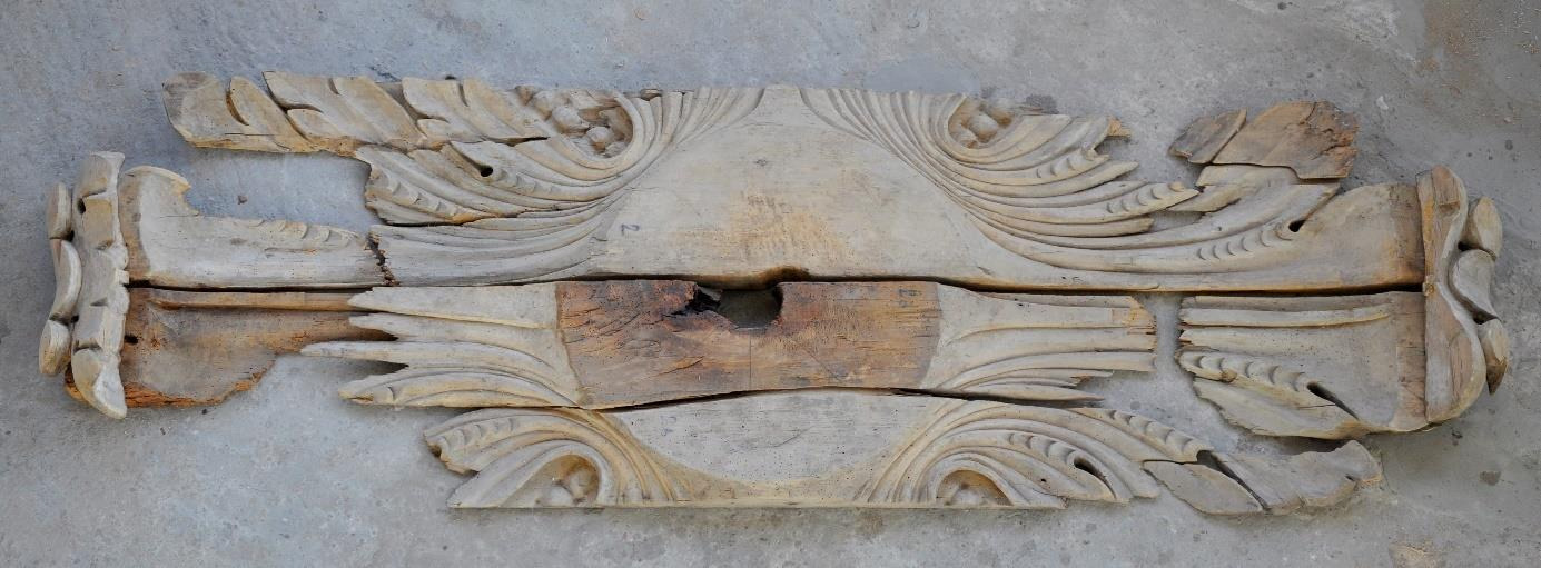 Ściany, gzymsy i pasy z ornamentami oraz dwa kapitele pilastrów
