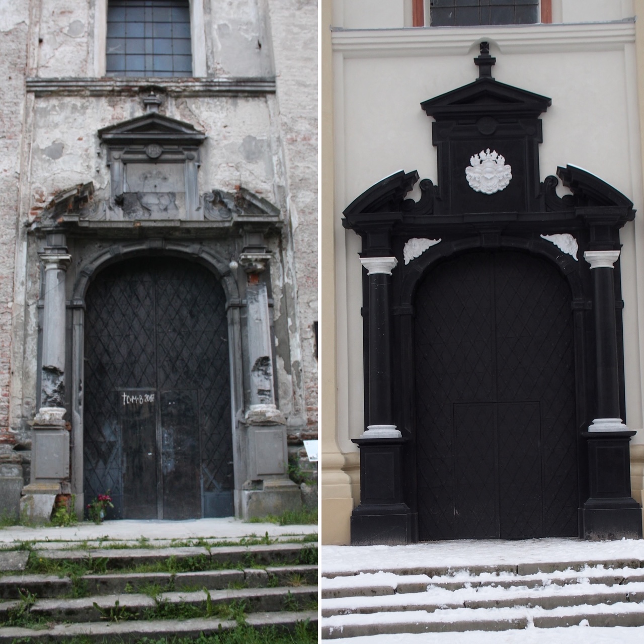 Ołyka, Kościół Św. Trójcy, portal wschodni po pracach konserwatorskich i montażu poddanych konserwacji oryginalnych drzwi (wyk. fot. P. Antoniuk), FDK 2025