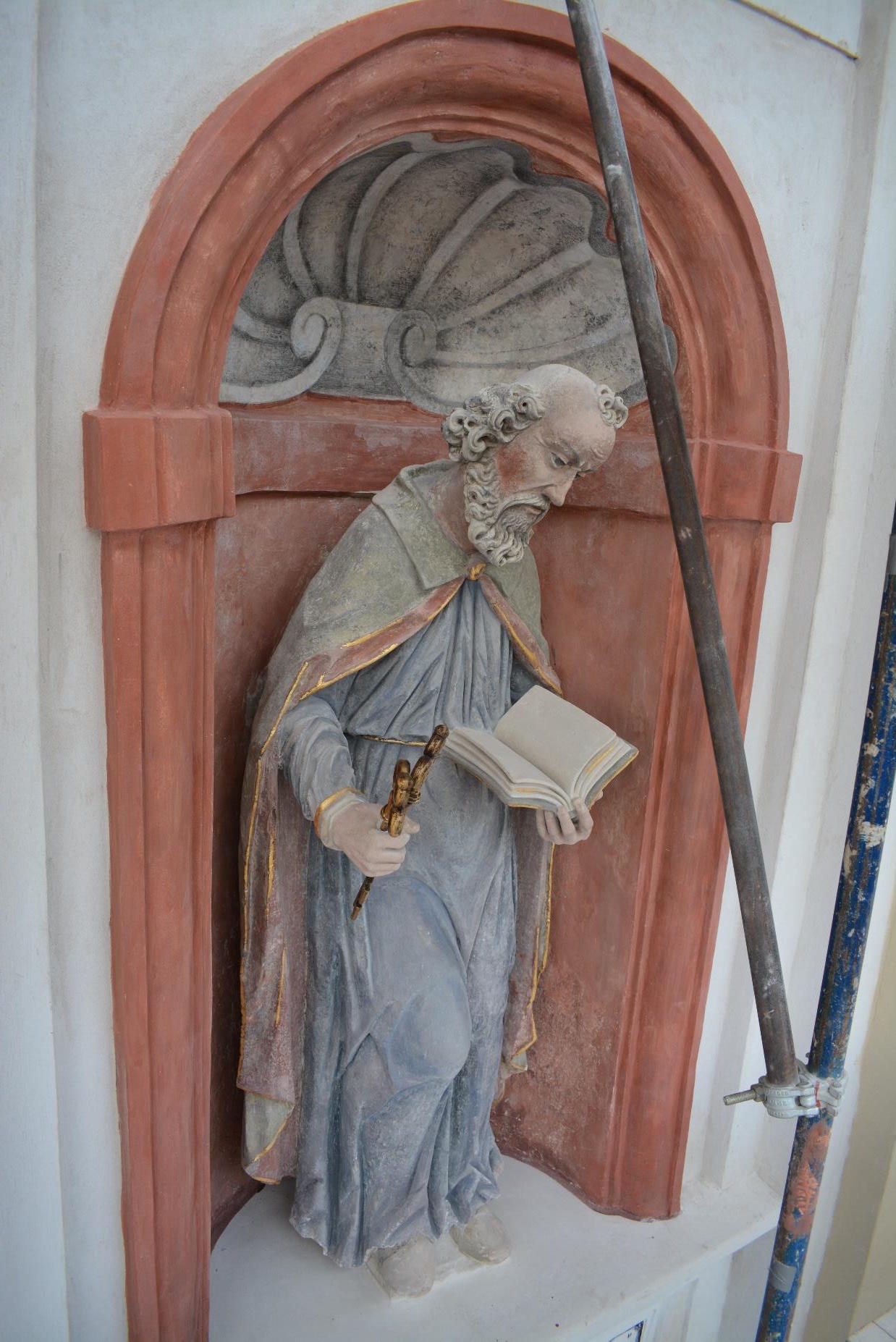 Rzeźbiarskie, drewniane elementy z wystroju świątyni, do których należą także drewniane rzeźby apostołów, uległy bardzo dużym zniszczeniom mechanicznym i biologicznym. W tym roku miała miejsce kontynuacja ich inwentaryzacji oraz wszelkich prac konserwatorsko- rekonstrukcyjnych, które trwają od 2014 roku.