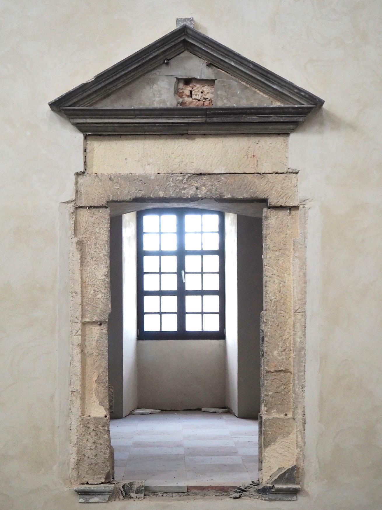 • Obramowanie okiennego portalu wschodniego (biblioteka)-  Konserwacja i restauracja;