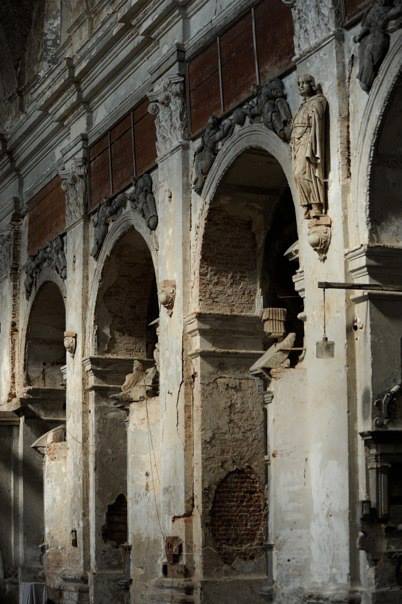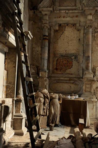 Zabezpieczony ołtarz w nawie bocznej przed skutkami działań wojennych Fot. Jan Żółtowski/FDK