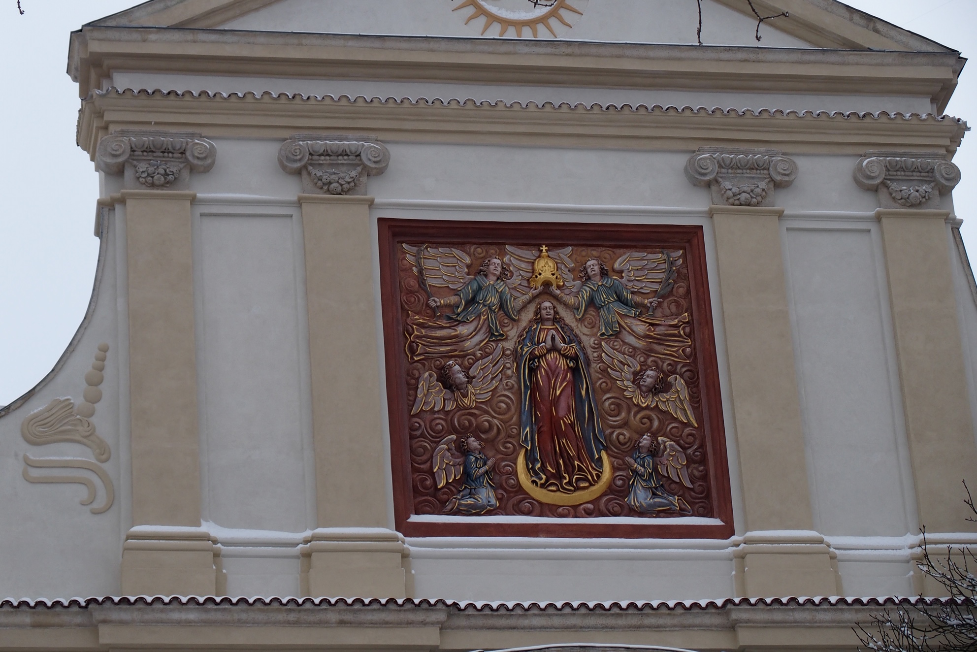 W 2019  roku ukończone zostały prace przy elewacji frontowej kościoła. Prace obejmowały wszystkie elementy elewacji w tym zabytkowy portal, płaskorzeźbę przedstawiającą koronację Matki Bożej, płaskorzeźbę przedstawiającą Boga Ojca, rzeźby apostołów, złocone zegary, rzeźby aniołów i krzyż wieńczący kościół. Zakonserwowanych zostało również łącznie 9 rozet drewnianych będących częścią wyposażenia kościoła.