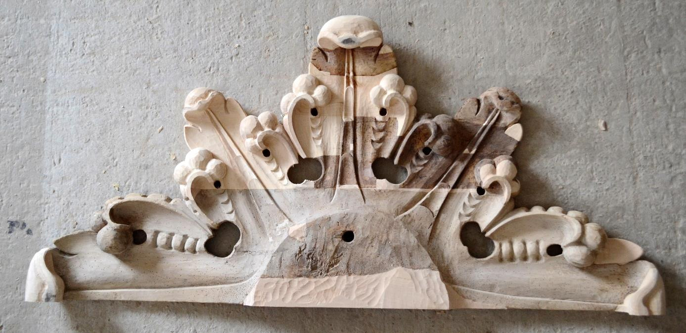 • Konserwacja dwóch kapiteli wraz z rekonstrukcją rzeźbiarską i pozłotniczą w nawie głównej;