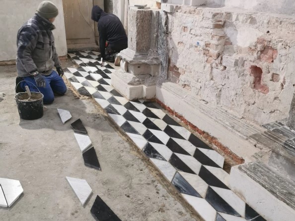 • konserwacja i rekonstrukcja posadzki przed ołtarzem w nawie wschodniej