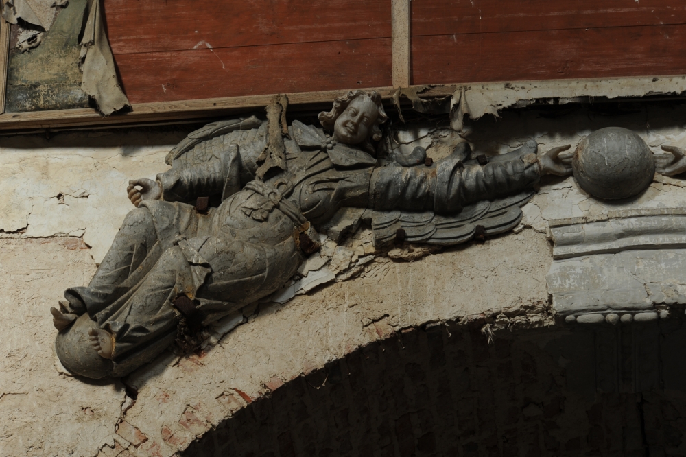 A survey was performed in 2013, which involved inspecting the condition of the structural elements of the building (including the roof trusswork) and of the ornamental features of the church (sculptures, altars, epitaph plaques). The colour scheme and the rare remains of wall paintings were examined in detail as well. Based on the resultant expert reports, it was possible to carry out the first series of preservation works in 2014, which averted the risk of a structural collapse.  The body of the building was reinforced (using steel bars and carbon fibre bands), the ruined buttresses (east and west) were reconstructed, and a drainage system was installed – including a set of rain gutters and downspouts.
