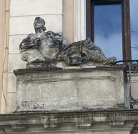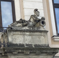 Figura Marsa jest sygnowana nazwiskiem Paul Eutele, figura Wenus jest wcześniejsza, bez sygnatury, przypisywana Maciejowi Polejowskiemu. W niedalekiej przeszłości balkon był odnawiany, wówczas cokoły i częściowo rzeźby zamalowano zaprawą cementową.
