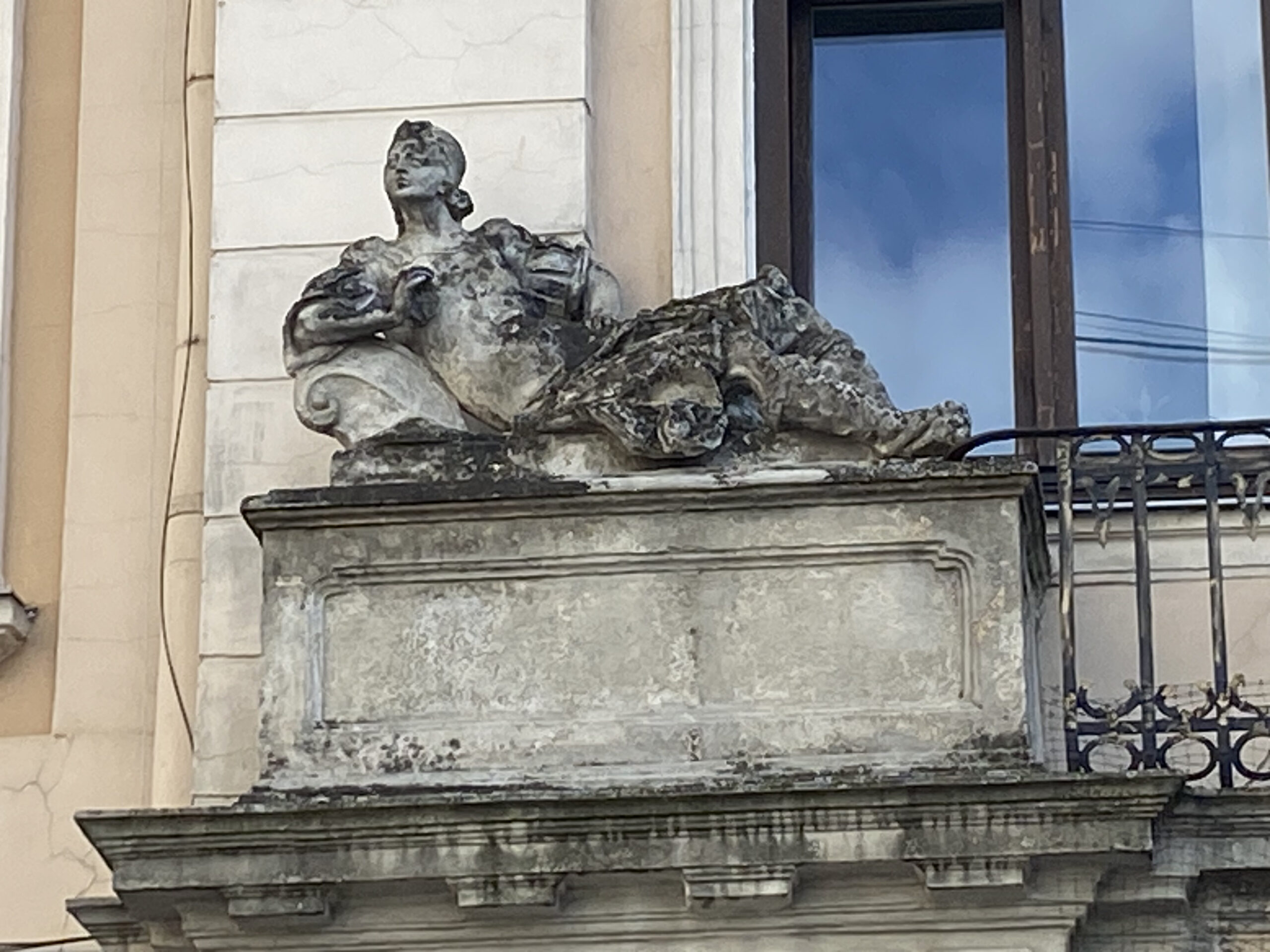 Figura Marsa jest sygnowana nazwiskiem Paul Eutele, figura Wenus jest wcześniejsza, bez sygnatury, przypisywana Maciejowi Polejowskiemu. W niedalekiej przeszłości balkon był odnawiany, wówczas cokoły i częściowo rzeźby zamalowano zaprawą cementową.