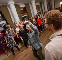 Warsztaty tańca o godzinie 20:00 poprowadził Grzegorz Ajdacki, znawca tańców tradycyjnych i instruktor z wieloletnim doświadczeniem.
